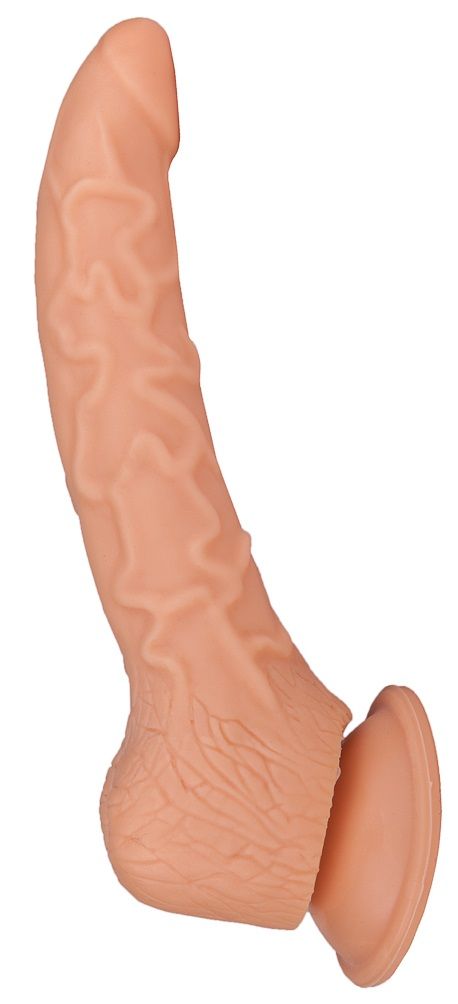 Фаллоимитатор имеет полужесткую структуру и искривлен таким образом, что полностью имитирует физиологическое положение мужского члена. При такой форме и жесткости можно использовать как для анального, так и вагинального секса. Ребристая поверхность придает брутальность и усиливает ощущения во время близости.